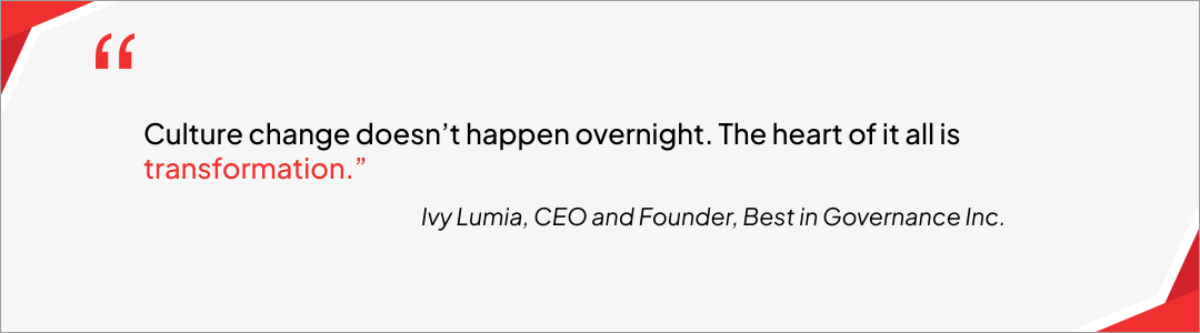 “It’s all about what the numbers say – the story behind the numbers needs to be explained. The story isn’t a one-time event – it’s a book with multiple chapters, and it’s your job to update the board on the chapters and the story. The art of reporting compliance to the board is linking the pieces together.” - Cindy Moehring, Former COO of Walmart and Current Founder & Executive Chair of Pyxus Inc.