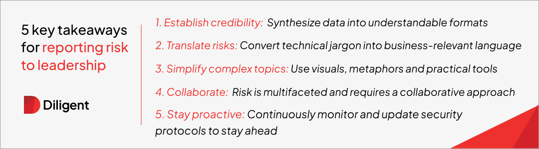 It also underscores the need for clear, concise communication with leadership to ensure they grasp the risks and their potential impacts.