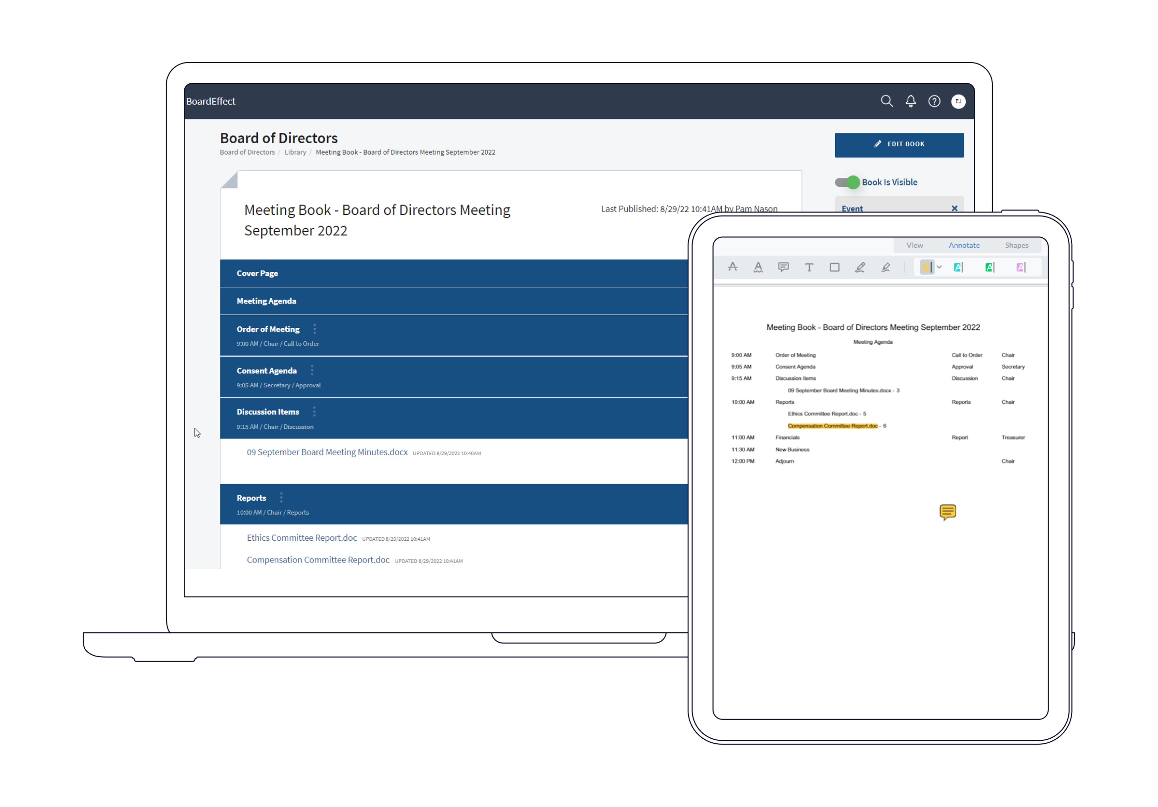 - Online Meeting Books deliver real-time access to agendas, board books, meeting minutes and more anywhere on any device.