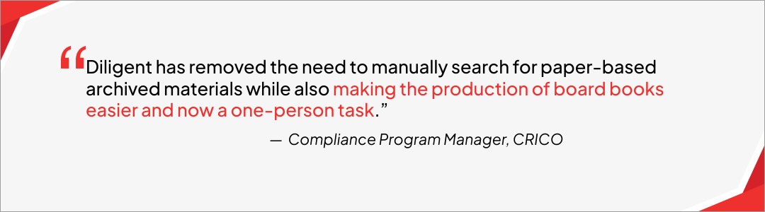 By adding up the time spent on each pack and multiplying it by the labor cost, FirstRand determined it spent almost $US 1.5 million per year on board packs. After adopting Diligent Boards, part of the Diligent One Platform, the company reduced costs by 50%, even after accounting for software licensing fees, implementation and training.