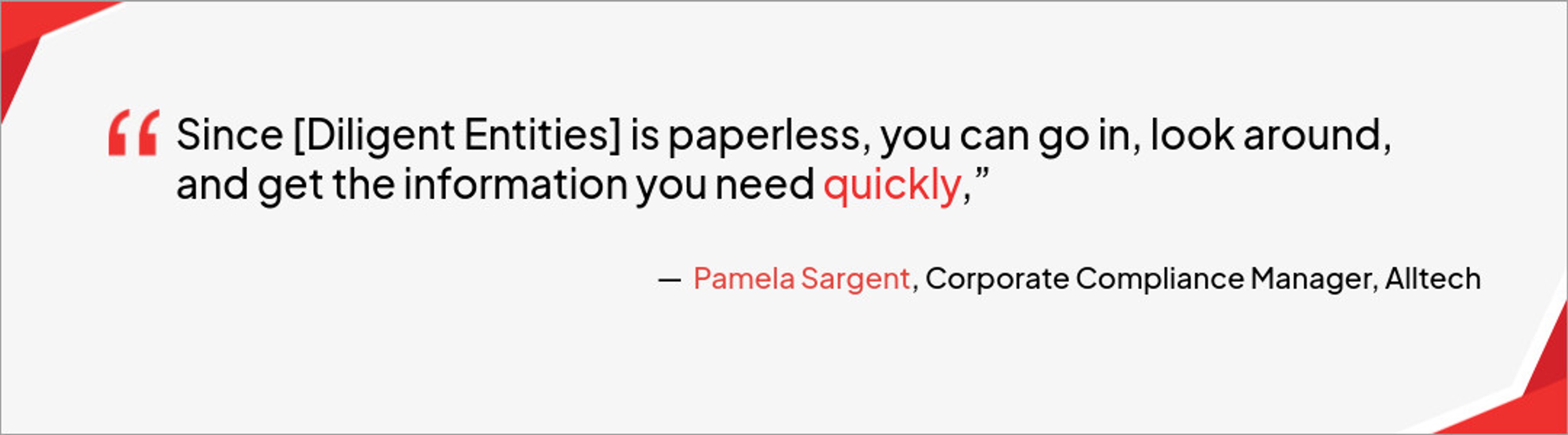 “I would often have to call somebody to help look for it. For example, calling our corporate counsel in South Africa and asking for something they prepared 10 years ago and then having them look for it,” says Pamela Sargent, Corporate Compliance Manager at Alltech.