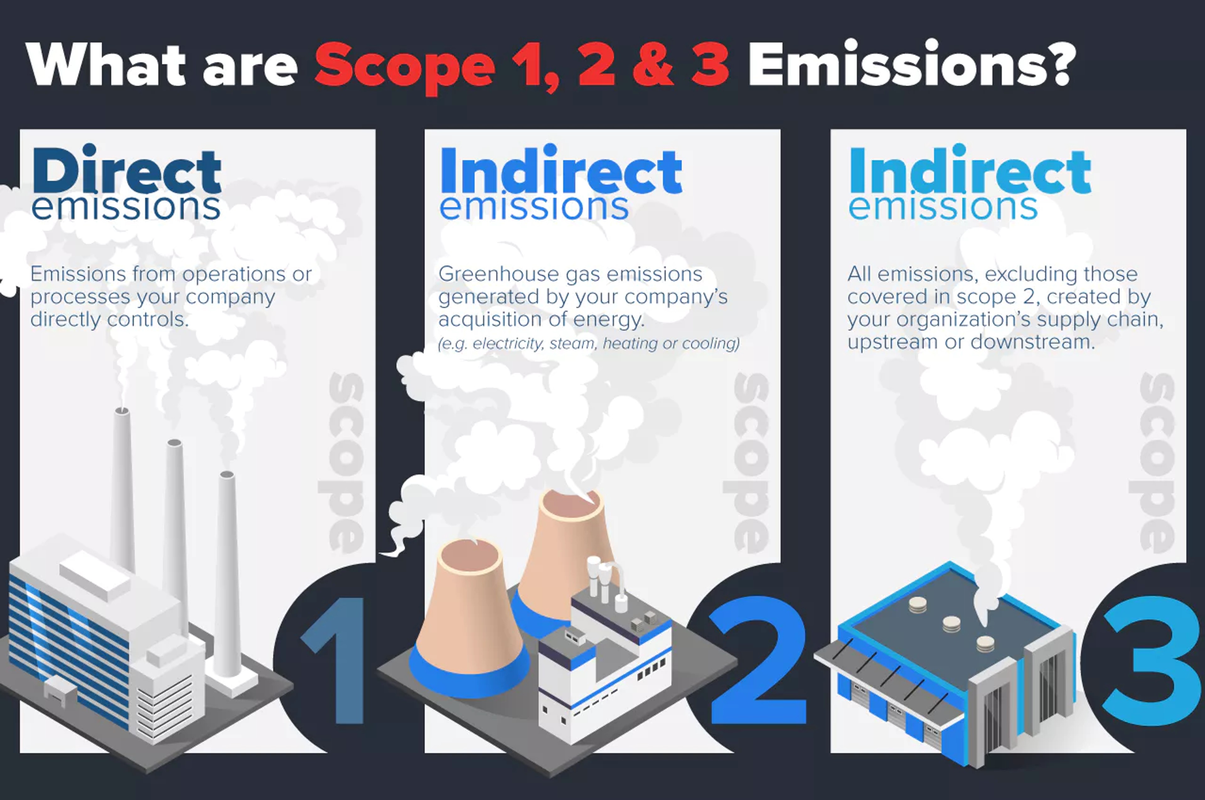 To take this first step and understand how to tackle scope 1, 2 and 3 emissions, we need clarity on what emissions fall into each category.