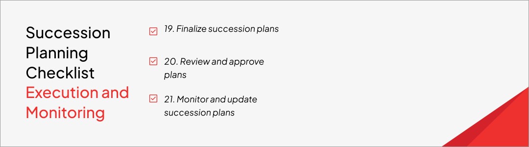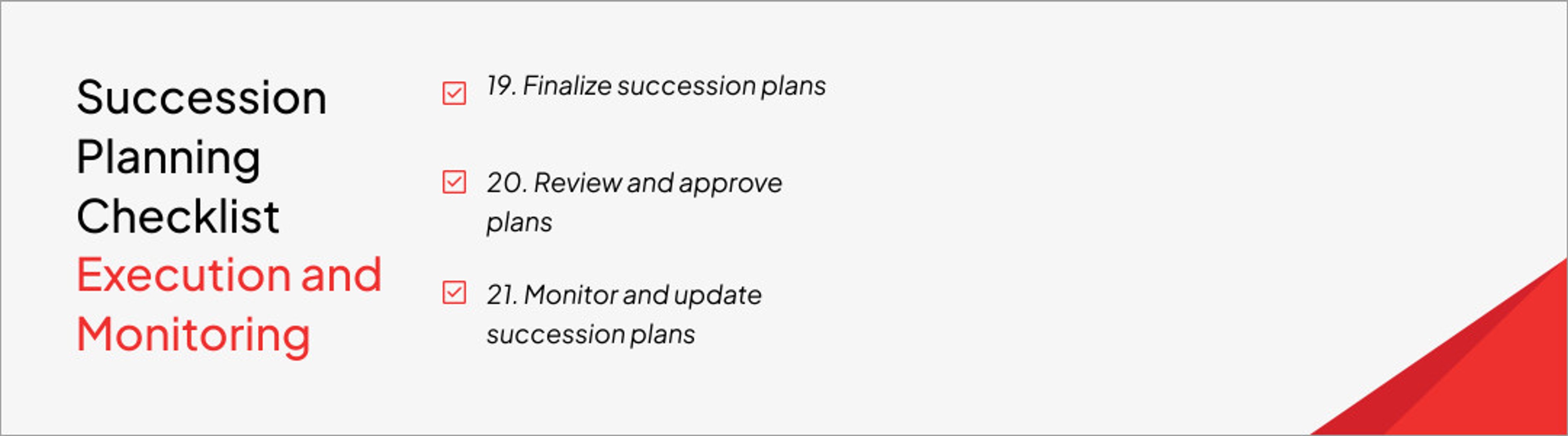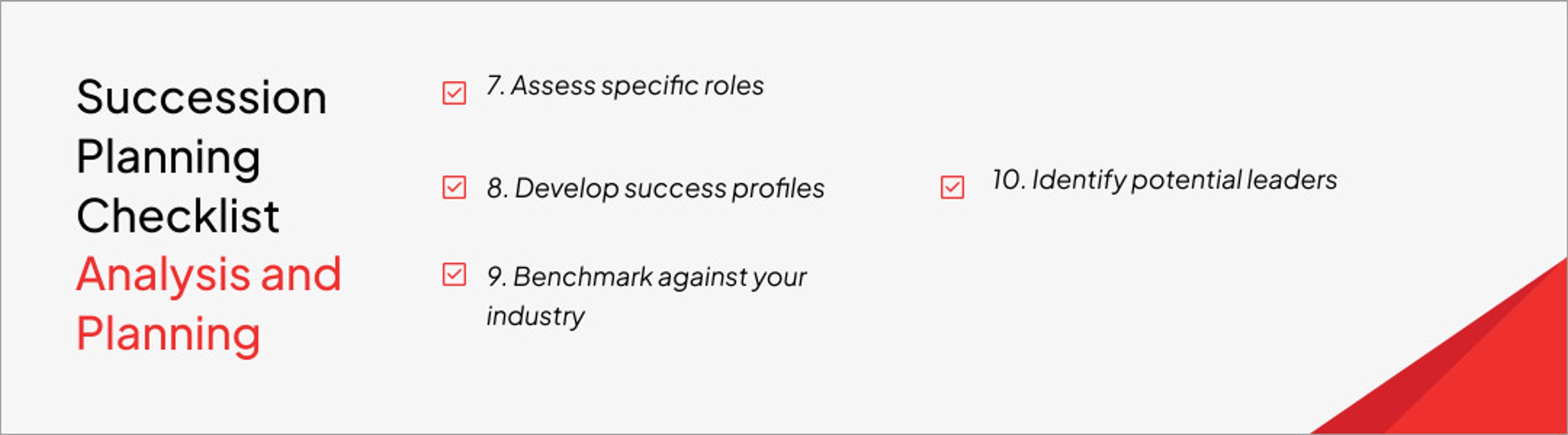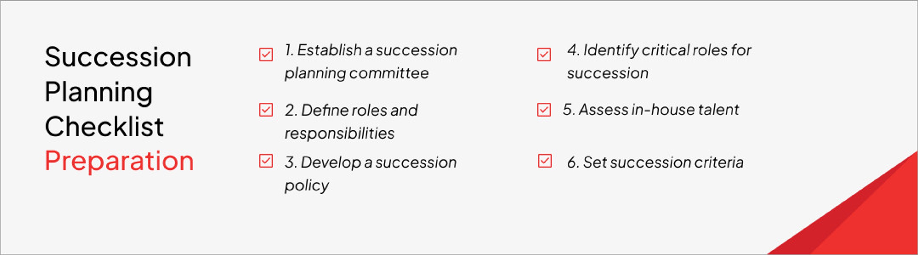 A succession planning checklist is a step-by-step guide to creating an effective succession plan. It adds structure to a notoriously unpredictable process, making it easier to identify, cultivate and ultimately secure fresh talent while minimizing disruptions during transitions.