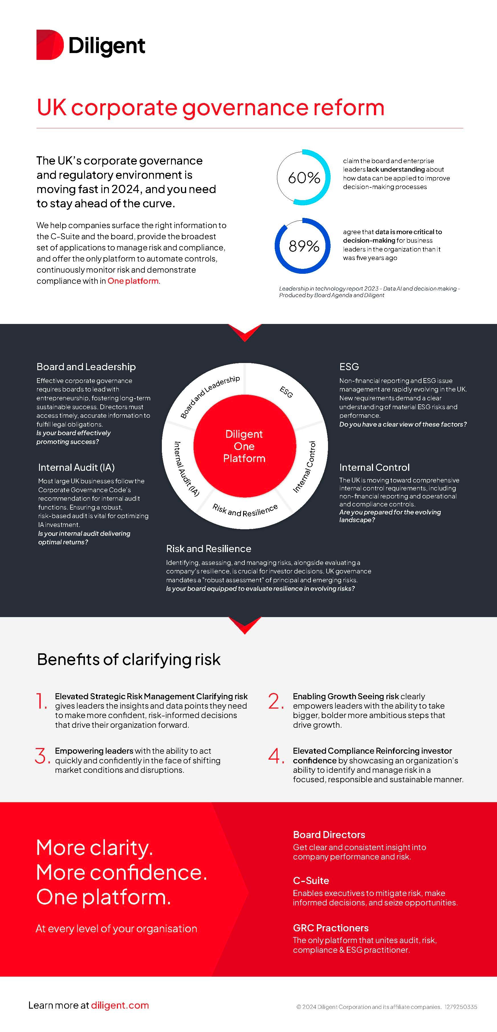 Discover how to proactively navigate the ever-evolving regulatory landscape and foster trust with your stakeholders using the Diligent One Platform.